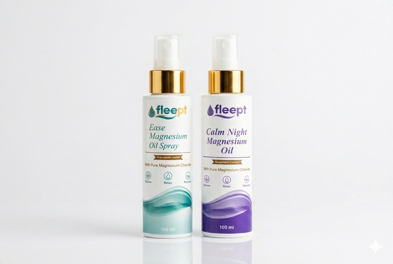 The Fleept Calm & Ease Duo combines two essential magnesium oil sprays — Calm Night and Ease — to support both nighttime relaxation and daily muscle recovery.